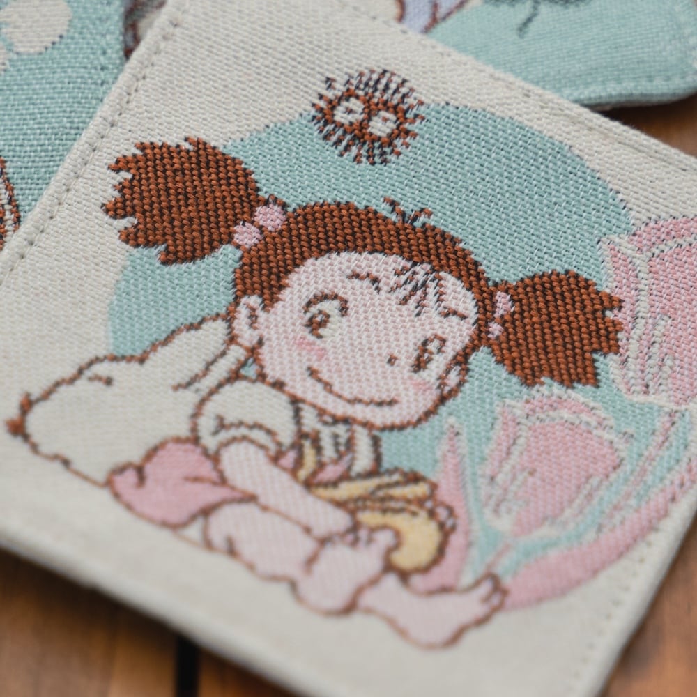 Offizielles 4er-Set „Das wandelnde Schloss“ von Studio Ghibli, Untersetzer/Matten/Bierdeckel/Getränkeuntersetzer mit den Figuren „Calcifer“, „Das wandelnde Schloss“ und „Hin“.