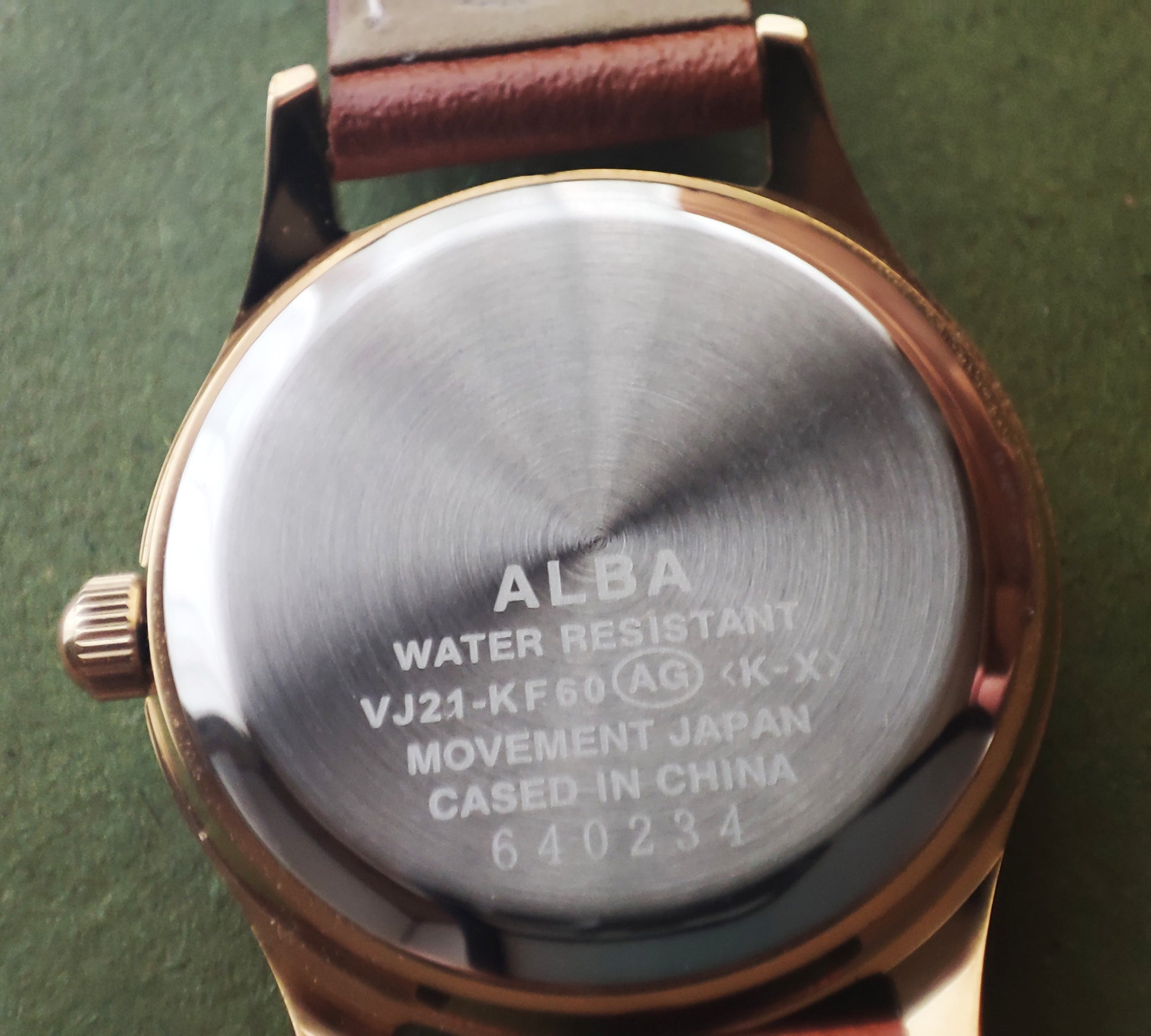 Wasserbeständig. Uhrwerk aus Japan, Gehäuse aus China.
