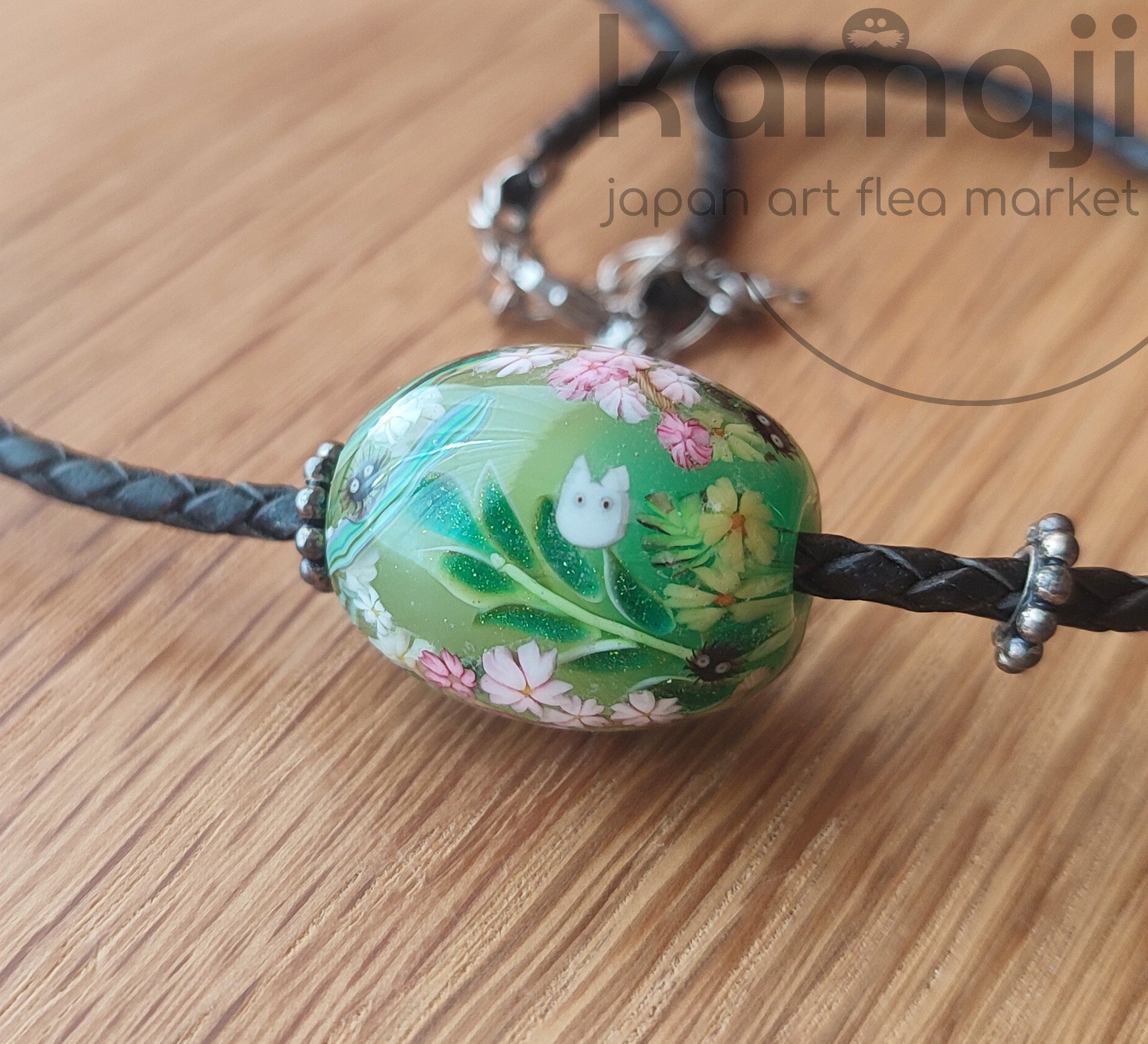 Collier officiel en verre fait main par le Studio Ghibli, représentant Petit Totoro, Moyen Totoro, Grand Totoro, Makkuro Kurosuke, des fleurs et des feuilles du film d'animation Mon Voisin Totoro.