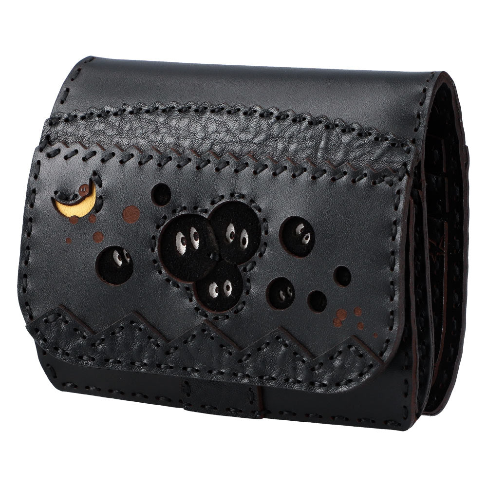 Official Studio Ghibli My Neighbor Totoro black handmade leather wallet/coin case/purse/pouch/clutch with Makkuro kurosuke characters.