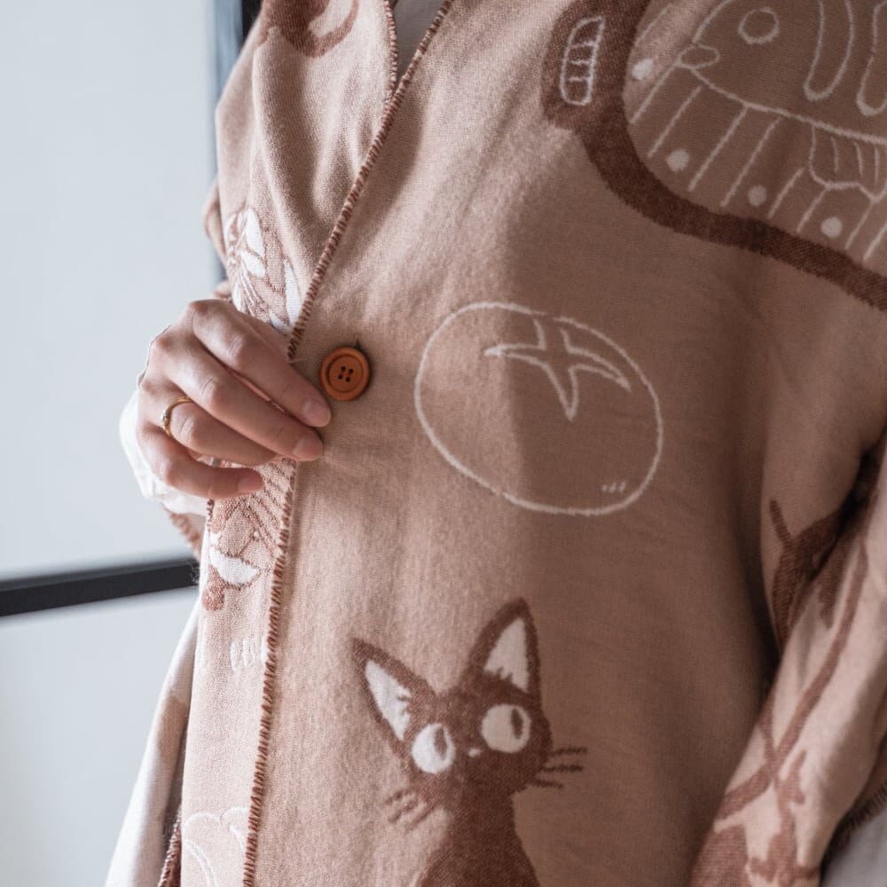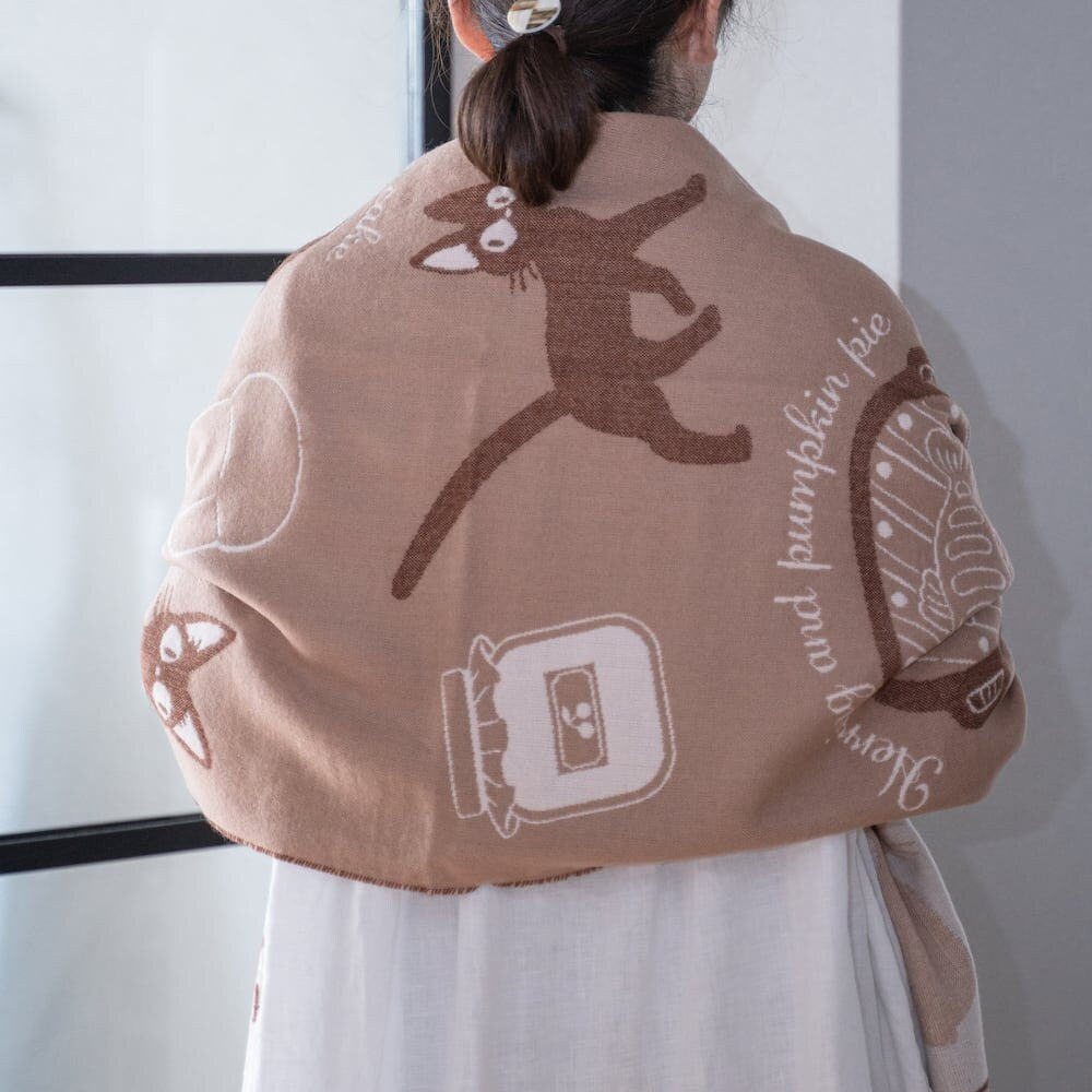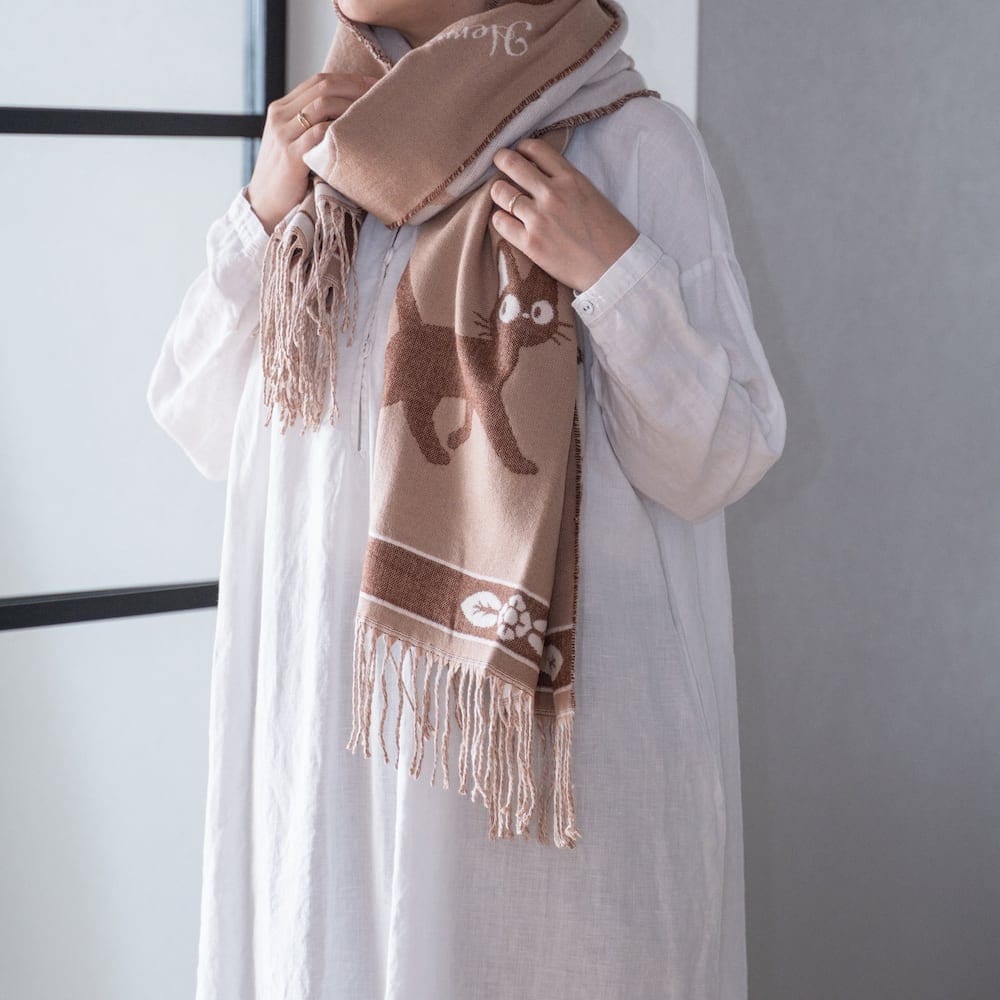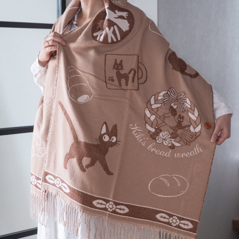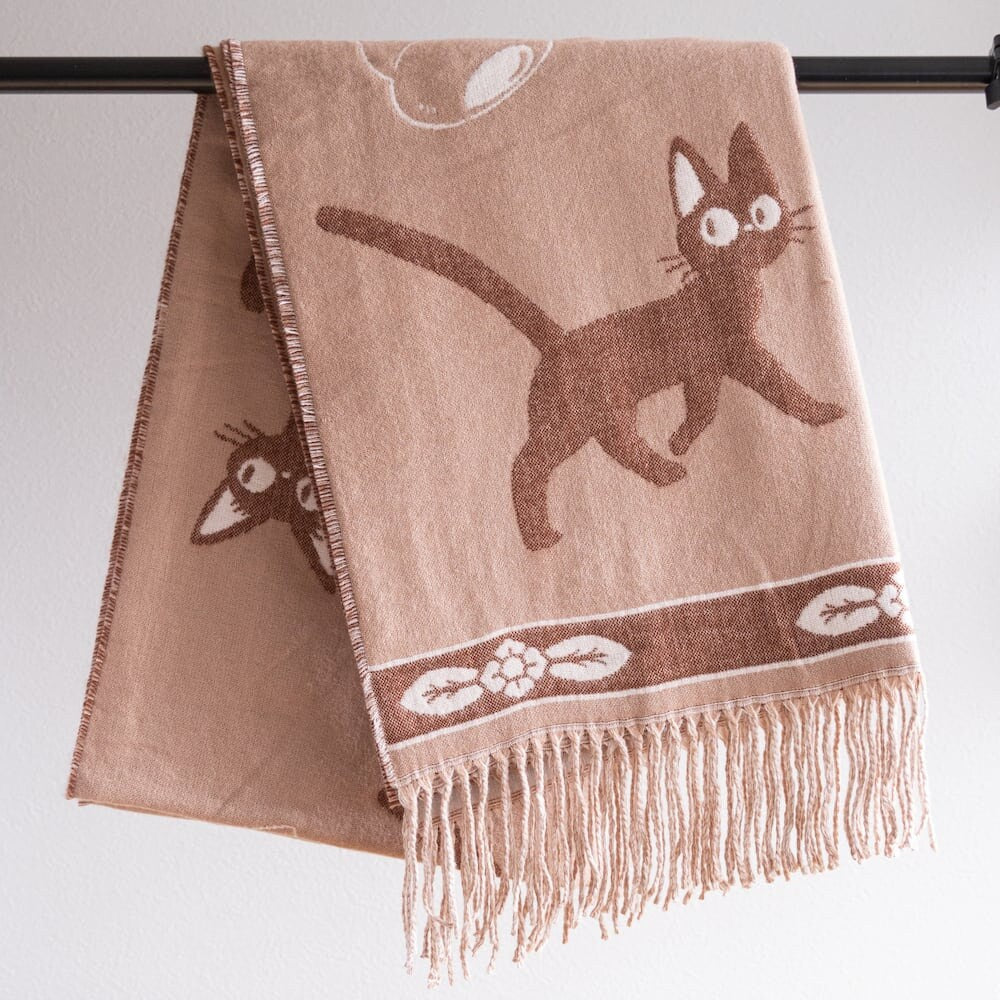 Official Ghibli Kikis Delivery Service Brown Shawl • Jacquard Stole with Jiji cat