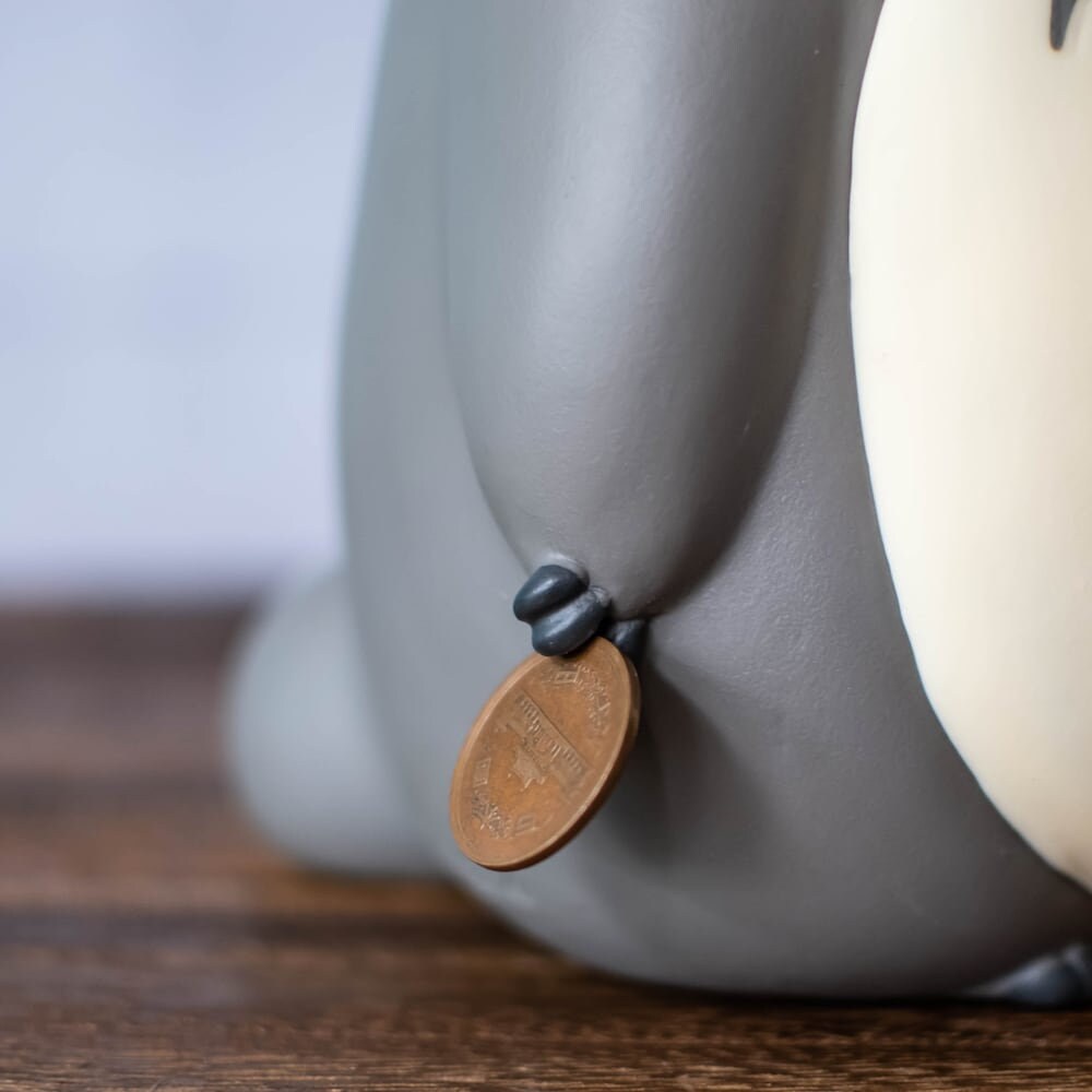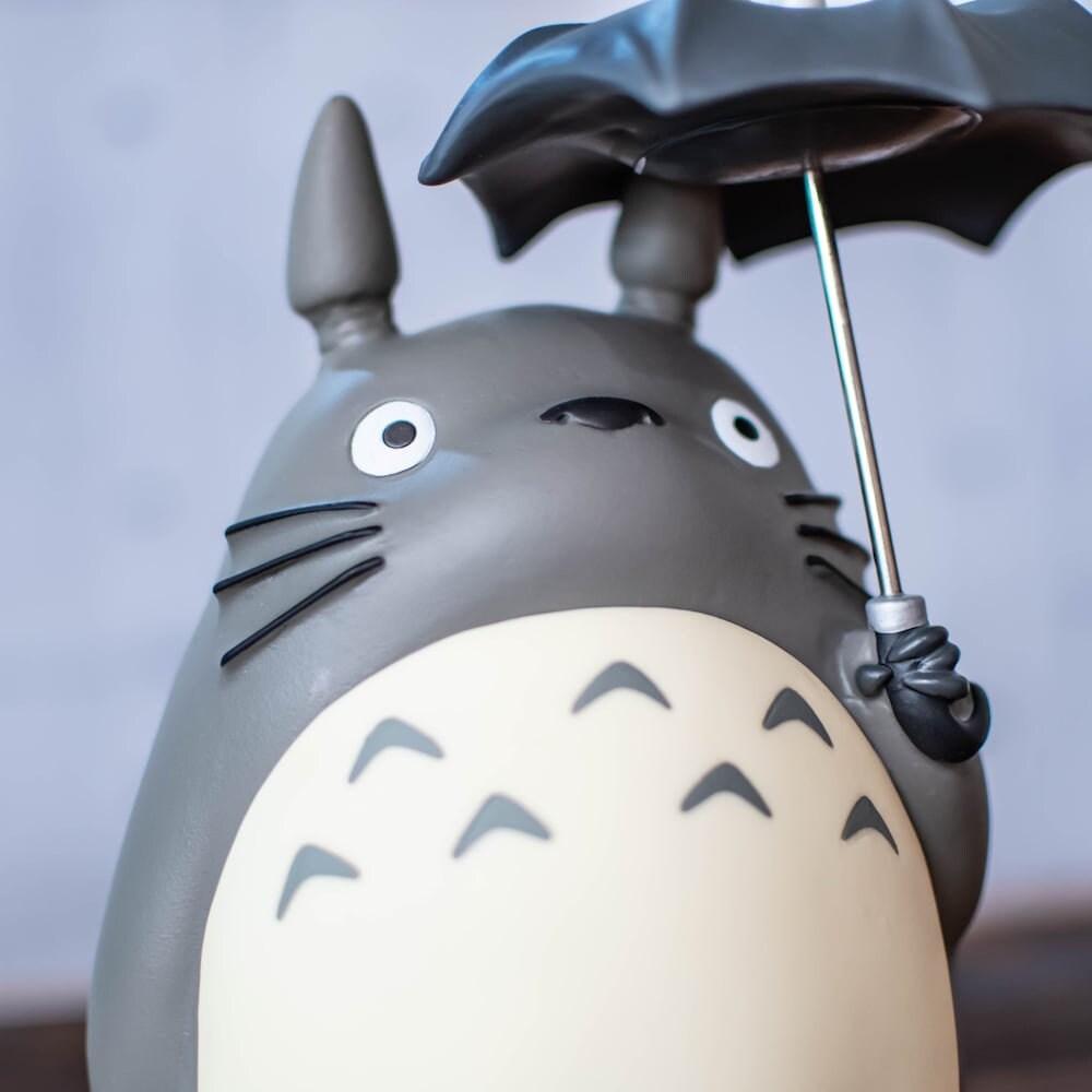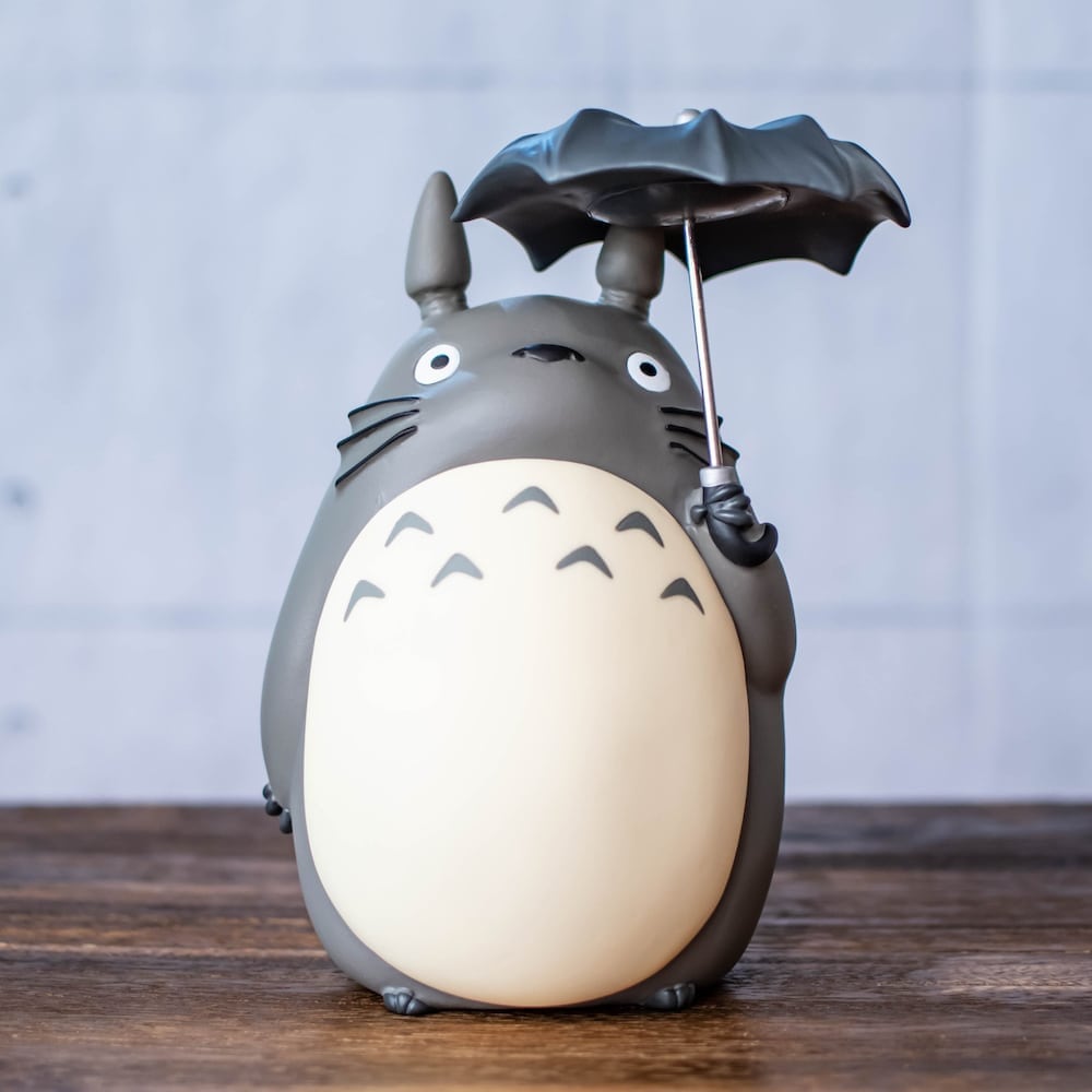 "This is a piggy bank with outstanding presence. The design reminds of the scene in the story where he is waiting for the cat bus in the rain with the umbrella he received from Satsuki.