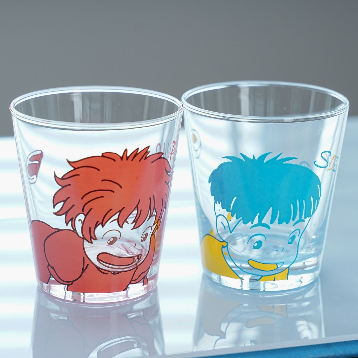 Official Studio Ghibli Ponyo and Sosuke pair of glasses/cups of Ponyo on the Cliff by the Sea anime. Japanese tableware/glassware/drinkware.