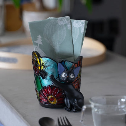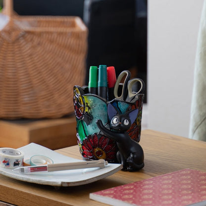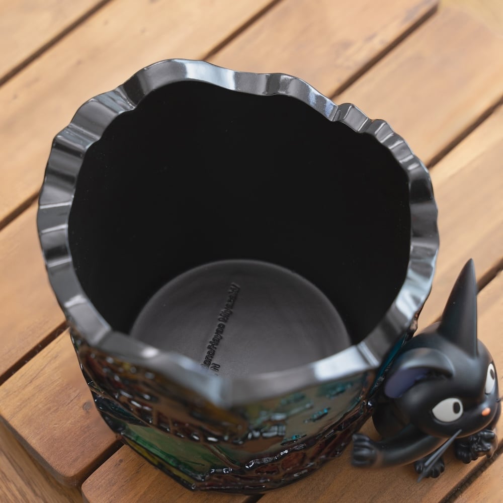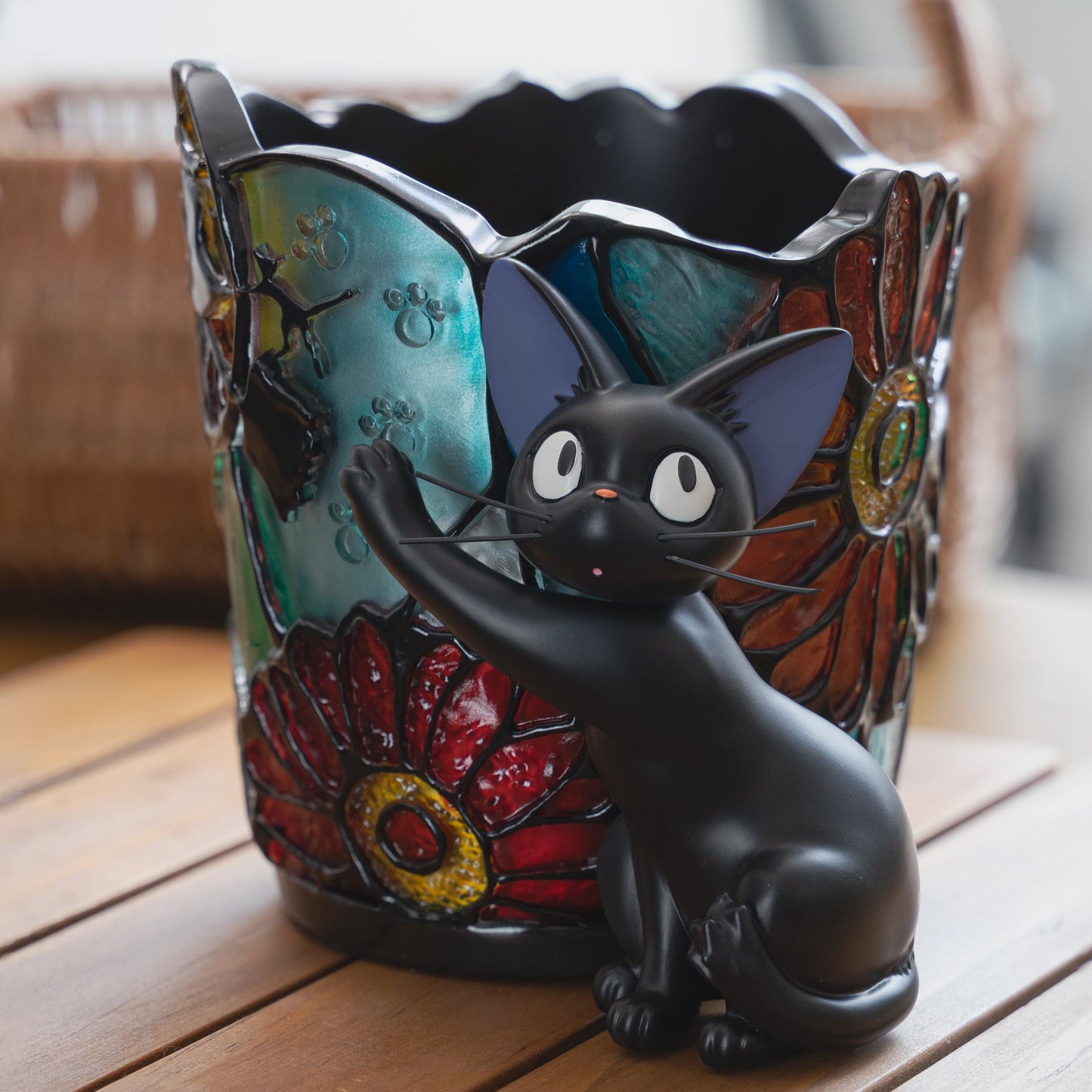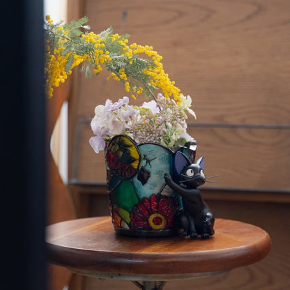 Official Studio Ghibli Kiki's Delivery Service planter cover/interior diorama with Jiji (Gigi) character. It can be also used as pot/vase/holder/home decor/figure/figurine/statue in Stained Glass style.