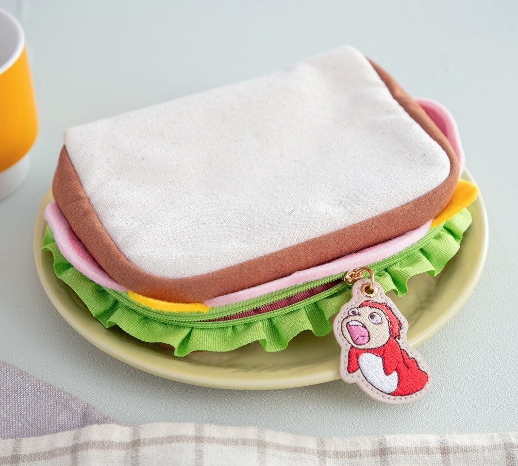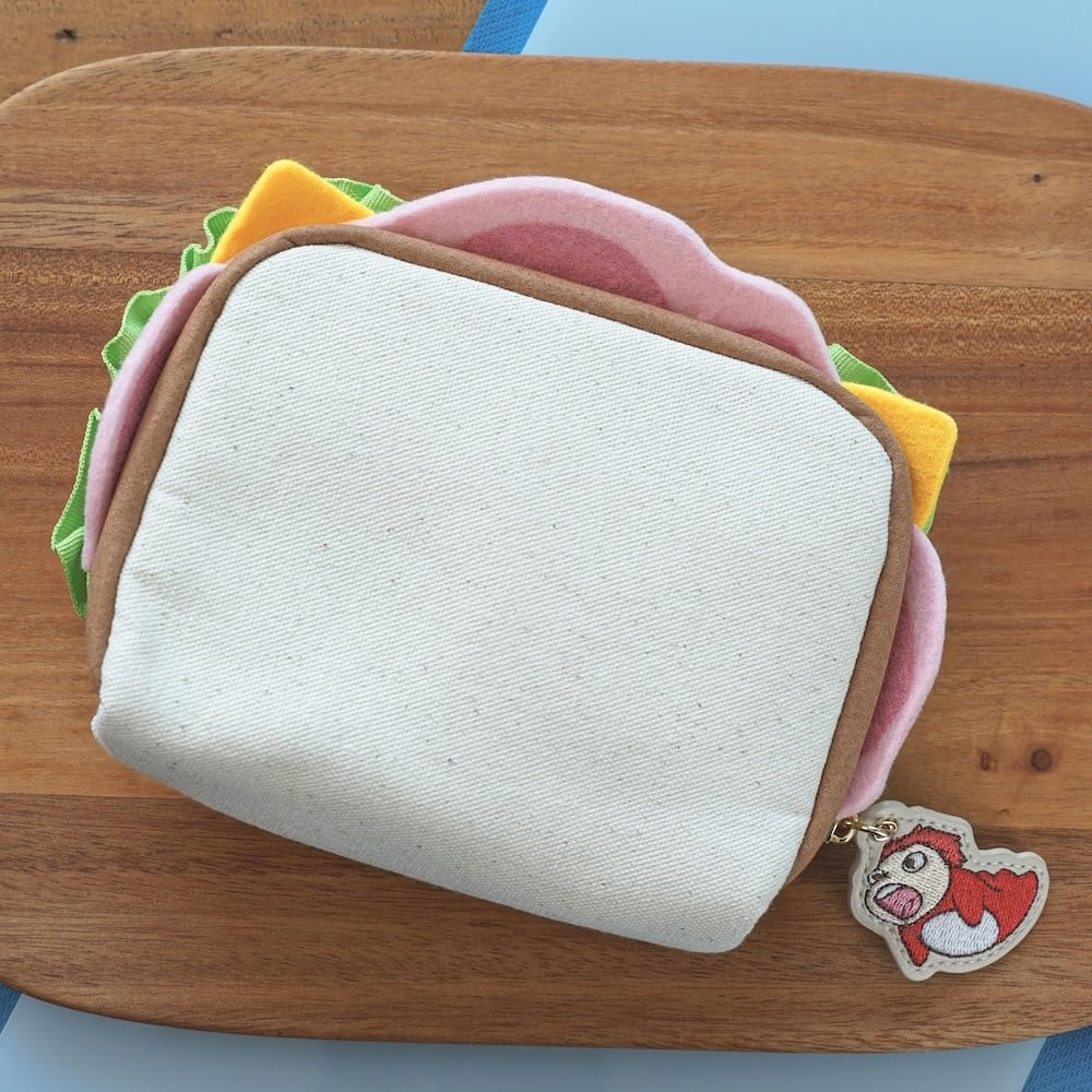Official Studio Ghibli Ponyo pouch/clutch/cosmetic bag/wallet/makeup bag/case/purse with ham sandwich pattern.