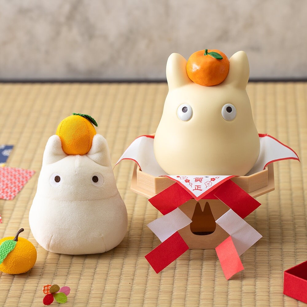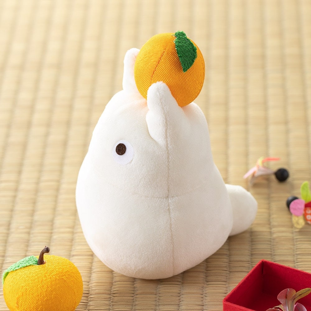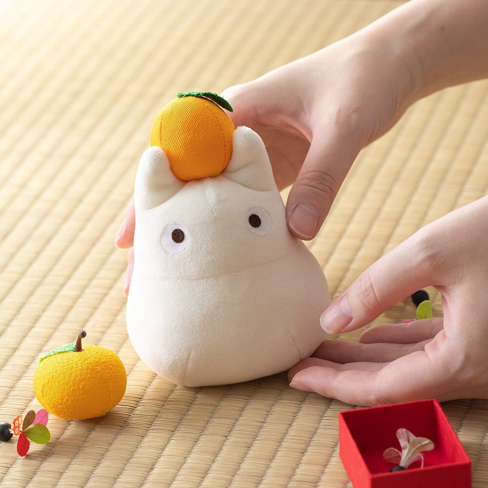"This is a small Totoro with a mandarin orange on his head and a chewy and soft shape like a kagami mochi.