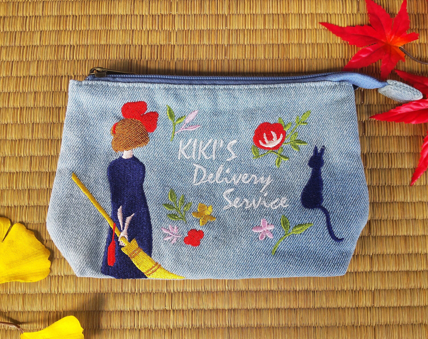 Official Studio Ghibli Kiki's Delivery Service case/pouch/clutch/cosmetic bag/wallet/makeup bag with Kiki and Jiji (Gigi) characters.