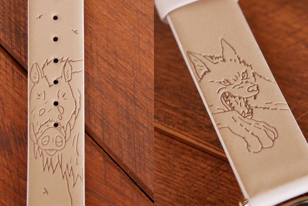 The back lid of the case is engraved with the Shishi god marking and serial number, making it the only special watch in the world. The back of the belt depicts the gods of the forest, Okkoto-nushi and Moro.